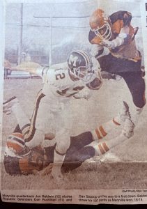 In the championship game, the Spoofhounds generated 254 yards of total offense, with quarterback Baldwin throwing for 119 yards on 11-of-27 passing and Frank Grispino and Paul Barger combining for 96 yards rushing. Maryville set the tone early, taking the opening drive 59 yards in 13 plays to score the first touchdown.