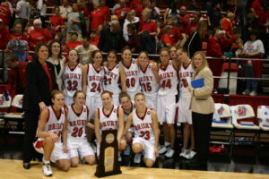 The 1996 state championship team featured seniors Tara Mitchem, Beth Magers and Kellie Noyes.